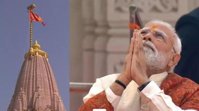 अयोध्या राम मंदिर में पीएम मोदी ने फहराया पवित्र धर्म-ध्वज