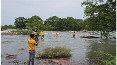 तेज बहाव में फंसे युवक ने पेड़ पर चढ़कर बचाई जान, SDERF ने रेस्क्यू कर निकाला