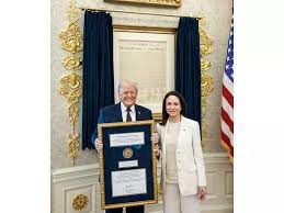 वेनेजुएला की मचाडो ने ट्रंप को दिया नोबेल शांति पुरस्कार, बयान से हलचल