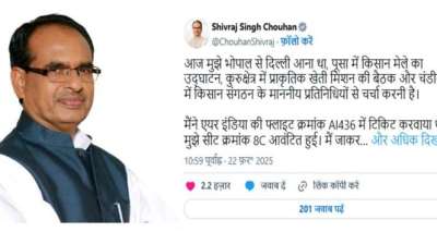 दिल्ली: केंद्रीय कृषि मंत्री शिवराज सिंह चौहान ने एयर इंडिया की बदइंतजामियों पर नाराजगी जताई है। शिवराज की नाराजगी इतनी बढ़ गई कि उन्होंने अपनी पीड़ा को सोशल मीडिया पर...