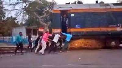 अमेठी में रेलवे कर्मचारियों ने धक्का देकर ट्रेन को स्टेशन तक पहुंचाया
