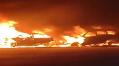 यमुना एक्सप्रेसवे पर भीषण हादसा, आपस में टकरा गईं तीन कारें, दो में लगी भीषण आग
