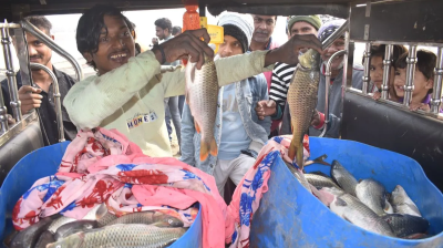 मुरादाबाद की रामगंगा नदी में मछलियों की मौत, लोग ड्रमों में भरकर मछलियां बेचते नजर आए