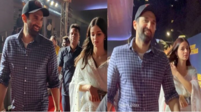 फिल्म 'मेरी क्रिसमस' की स्पेशल स्क्रीनिंग में एक साथ बाहर निकले आदित्य रॉय कपूर और अनन्या